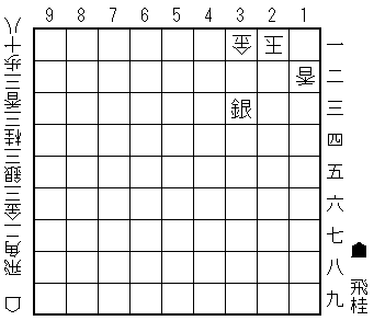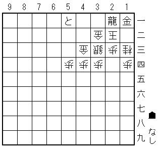 ▲1三角△同桂▲4一飛△2二玉▲2一金△1二玉▲1一金△2二玉▲2一飛成まで9手詰